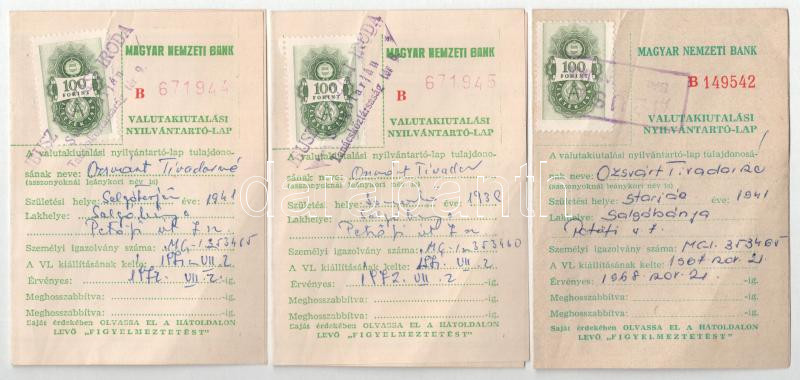 Leírás: 1968-1972. "Valutakiutalási nyilvántartó-lap" okmánybélyeggel (3x)