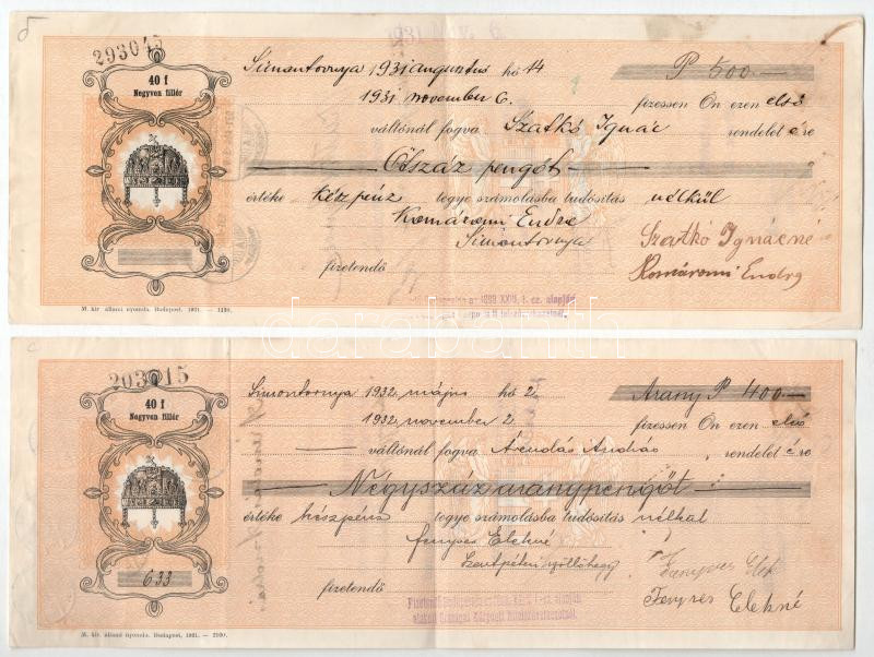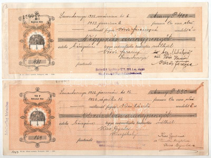 1922-1936. 7db-os váltó tétel, mind kitöltött, bélyegzésekkel néhány d... https://www.darabanth.com/hu/440-Gyorsarveres/440.0/Numizmatika/Papir-es-fem-szuksegpenzek~1500009/1922-1936-7db-os-valto-tetel-mind-kitoltott-belyegzesekkel-nehany-darabon-illetekbelye~II2892861