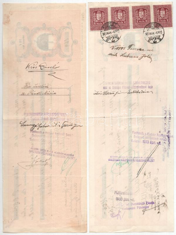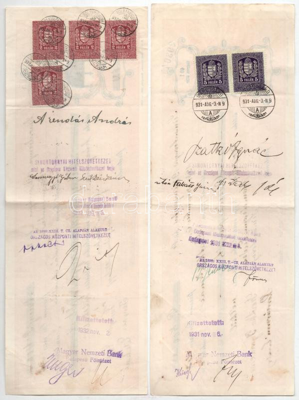 Leírás: 1922-1936. 7db-os váltó tétel, mind kitöltött, bélyegzésekkel néhány darabon illetékbélyegek T:F