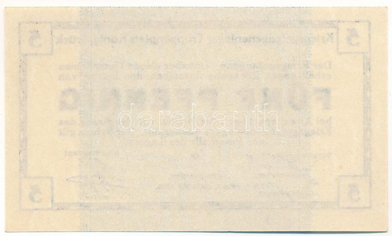 Német Birodalom / Königsbrück hadifogolytábor 1915. 5pf T:UNC German E... https://www.darabanth.com/hu/440-Gyorsarveres/440.0/Numizmatika/Papir-es-fem-szuksegpenzek~1500009/Nemet-Birodalom-Konigsbruck-hadifogolytabor-1915-5pf-TUNC-German-Empire-Konigsbruck-POW~II2893078