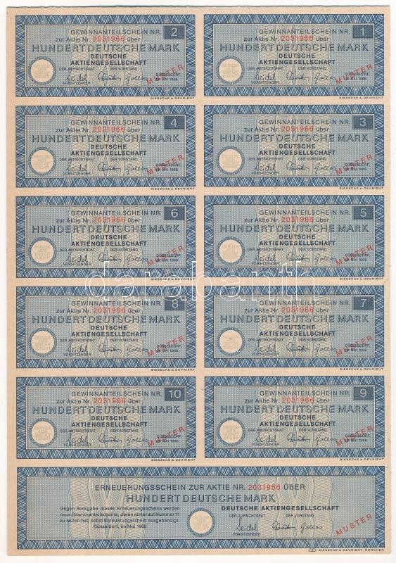 Német Szövetségi Köztársaság 1966. "Német Részvénytársaság" részvénye 100M "MUSTER (minta)" T:XF