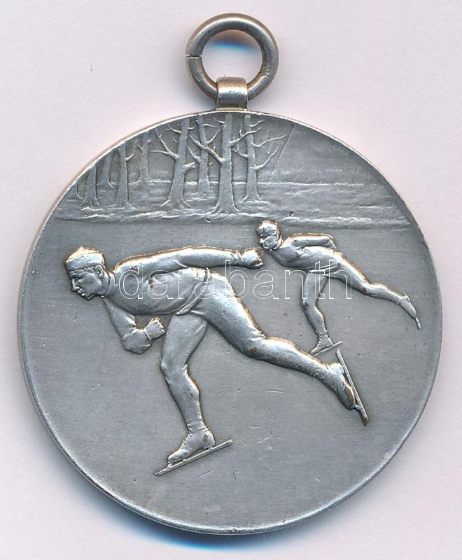 Leírás: ~1930. "Korcsolya" kétoldalas, ezüstözött bronz díjérem füllel (36mm) T:AU patina