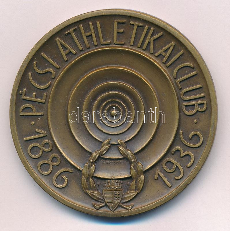 Gosztonyi Alice (1900-1970) 1936. "Pécsi Athletikai Club alapításának 50. évfordulója" kétoldalas bronz emlékérem, peremén "LUDVIG" gyártói jelzéssel (61mm) T:2 Hungary 1936."50th Anniversary of the Athletic Club of Pécs" Br commemorative medallion, "LUDVIG" makers mark on the edge. Sign.: Alice Gosztonyi (61mm) C:XF