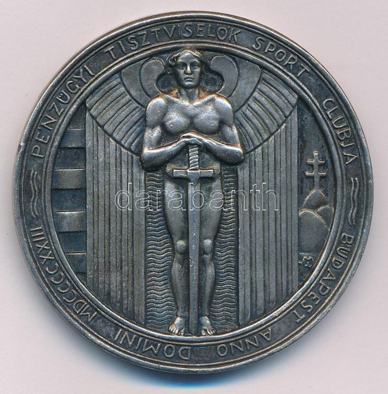 Martinelli Jenő (1886-1949) ~1930. "Pénzügyi Tisztviselők Sport Clubja - Budapest anno Domini MDCCCXXIII" peremén jelzett, ezüstözött bronz sport díjérem (45mm) T:AU