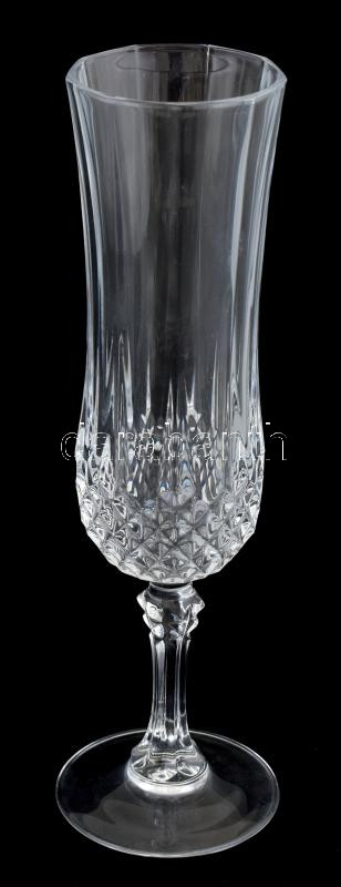 Leírás: 6 db talpas pezsgős kristály pohár, hibátlan, m: 21 cm