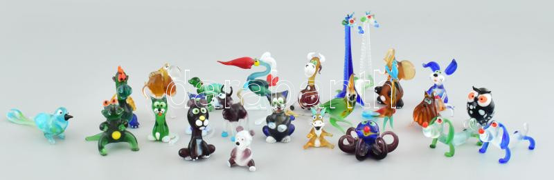 Leírás: Muránói vegyes üveg állatfigurák, néhány darabon kis sérülés, kopásokkal, m: 3-10 cm