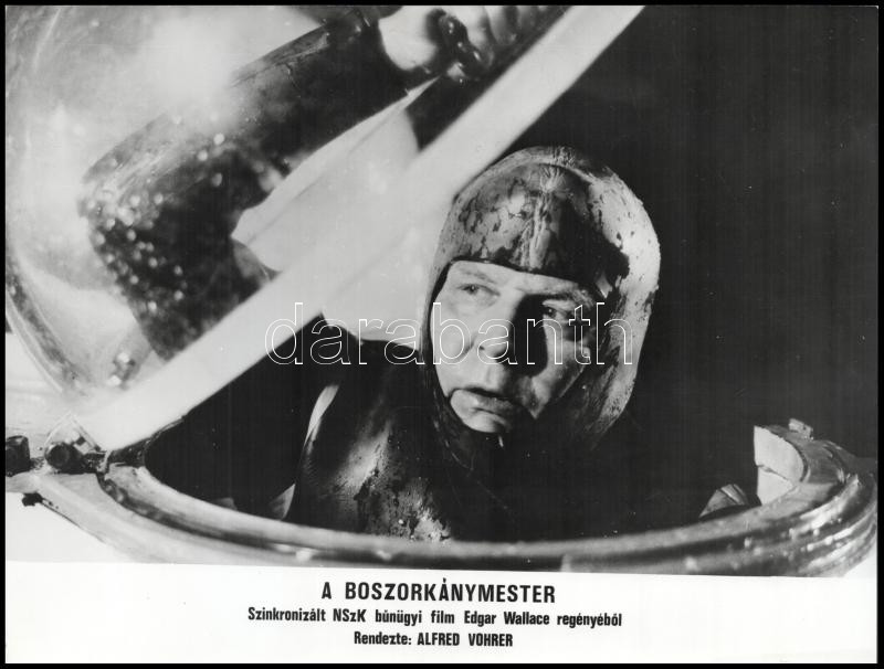 cca 1964 ,,A boszorkánymester" című NSZK misztikus bűnügyi film jelenetei és szereplői, 7 db vintage produkciós filmfotó ezüst zselatinos fotópapíron, a használatból eredő (esetleges) kisebb hibákkal, 18x24 cm