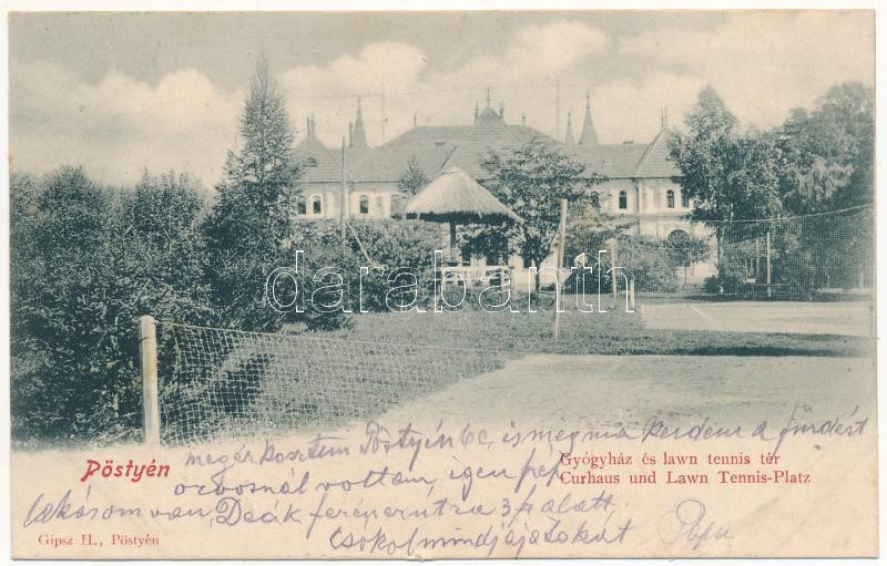 1904 Pöstyén, Piestany; Gyógyház és Lawn tenisz tér, teniszpálya. Gips... https://www.darabanth.com/hu/441-Gyorsarveres/441.0/Kepeslapok/Felvidek~1500006/1904-Postyen-Piestany-Gyogyhaz-es-Lawn-tenisz-ter-teniszpalya-Gipsz-H-kiadasa-Curhaus~II2898133