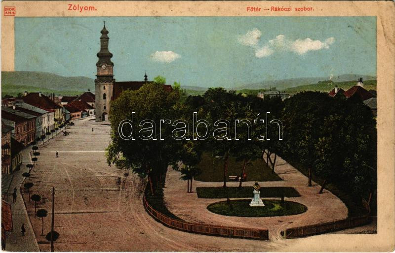 1916 Zólyom, Zvolen; Fő tér, Rákóczi szobor / main square, statue (EB) https://www.darabanth.com/hu/441-Gyorsarveres/441.0/Kepeslapok/Felvidek~1500006/1916-Zolyom-Zvolen-Fo-ter-Rakoczi-szobor-main-square-statue-EB~II2898237