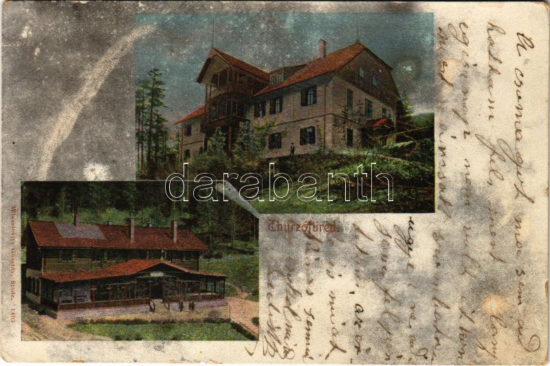 Leírás: Thurzófüred, Kúpele Turzov (Gölnicbánya, Gelnica); Budapest villa, Fürdő vendéglő, étterem. Kiadja Wlaszlovits Gusztáv 1403. / villa, spa restaurant (szakadás / tear)