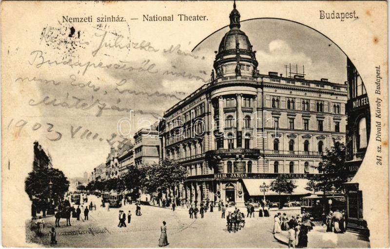 1902 Budapest VIII. Nemzeti színház, villamosok, Ehm János átterme, Él... https://www.darabanth.com/hu/441-Gyorsarveres/441.0/Kepeslapok/Magyarorszag~1500009/1902-Budapest-VIII-Nemzeti-szinhaz-villamosok-Ehm-Janos-atterme-Eletbiztosito-Reszvenyt~II2897599