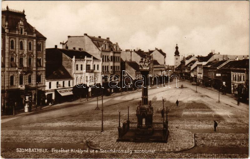 1932 Szombathely, Erzsébet Királyné út a Szentháromság szoborral. Welt... https://www.darabanth.com/hu/441-Gyorsarveres/441.0/Kepeslapok/Magyarorszag~1500009/1932-Szombathely-Erzsebet-Kiralyne-ut-a-Szentharomsag-szoborral-Weltner-S-uzlete-Knopfmar~II2903936