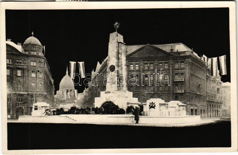 Leírás: Budapest V. Szabadság téri emlékmű esti világításban1950