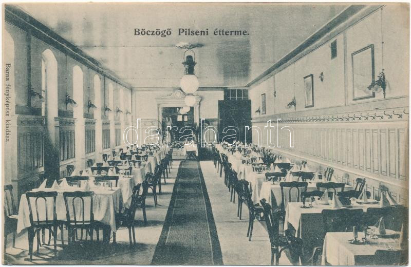 Miskolc, Böczögő Pilseni étterem belső. Barna fényképész kiadása https://www.darabanth.com/hu/441-Gyorsarveres/441.0/Kepeslapok/Magyarorszag~1500009/Miskolc-Boczogo-Pilseni-etterem-belso-Barna-fenykepesz-kiadasa~II2897192