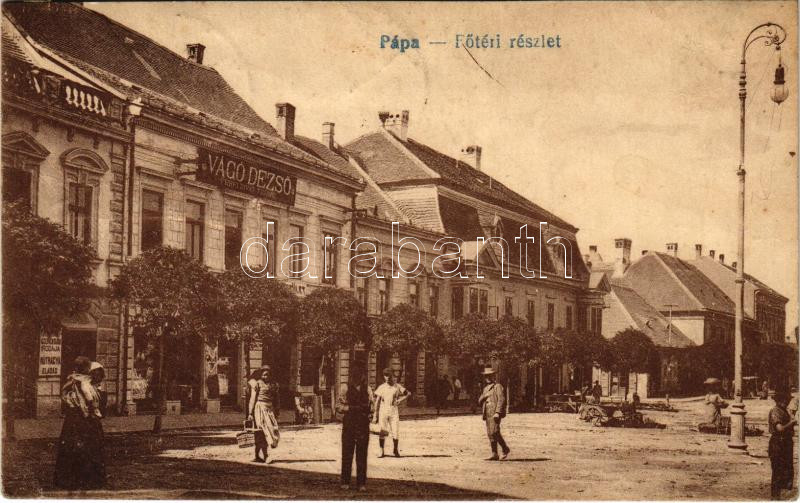 Pápa, Fő tér, Vágó Dezső üzlete, piac. Vasúti levelezőlapárusítás 280.... https://www.darabanth.com/hu/441-Gyorsarveres/441.0/Kepeslapok/Magyarorszag~1500009/Papa-Fo-ter-Vago-Dezso-uzlete-piac-Vasuti-levelezolaparusitas-280-r~II2901267