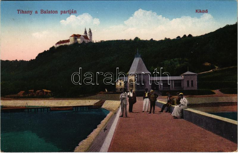 Tihany, A Balaton partján, kikötő, Apátság. Kiadja Kiss Lajos 351 sz. https://www.darabanth.com/hu/441-Gyorsarveres/441.0/Kepeslapok/Magyarorszag~1500009/Tihany-A-Balaton-partjan-kikoto-Apatsag-Kiadja-Kiss-Lajos-351-sz~II2900762