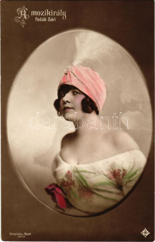 Fedák Sári: A Mozikirály. Strelisky Bpst 1913. https://www.darabanth.com/hu/441-Gyorsarveres/441.0/Kepeslapok/Szinesz~1500049/Fedak-Sari-A-Mozikiraly-Strelisky-Bpst-1913~II2903796