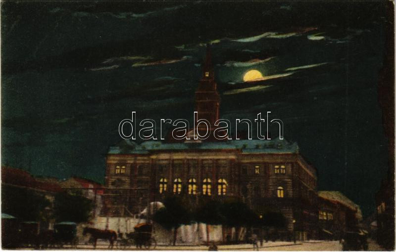 Leírás: Újvidék, Novi Sad; Városháza éjjel. Engel Róza kiadása / town hall at night (EK)