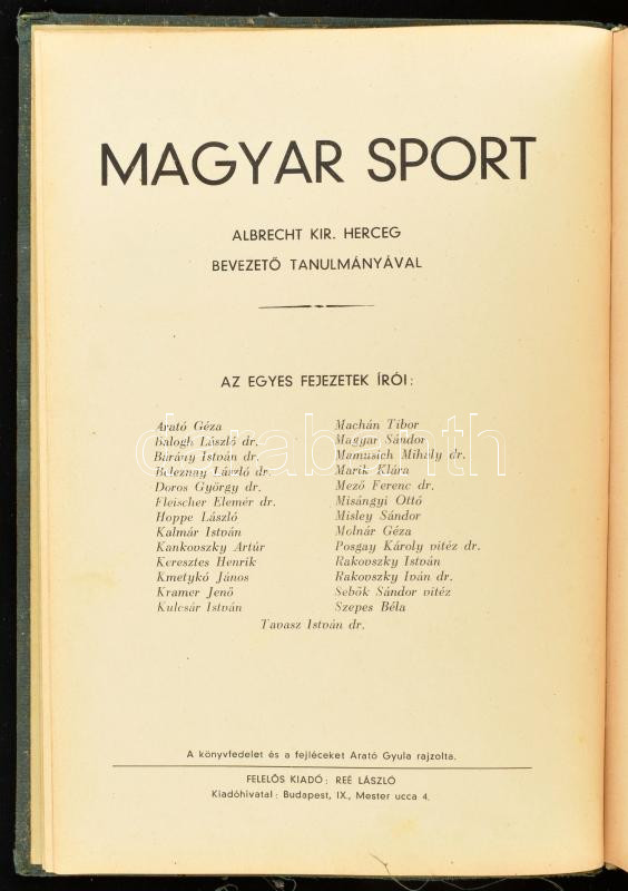 Albrecht Kir. Herceg et al.: Magyar Sport. Bp.,[1934], Merkantil-ny. K... https://www.darabanth.com/hu/441-Gyorsarveres/441.0/Konyvek/Konyvek-Sport-sakk-hegymaszas~500035/Albrecht-Kir-Herceg-et-al-Magyar-Sport-Bp-1934-Merkantil-ny-Kiadoi-egeszvaszon-kotesbe~II2903001