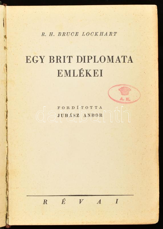R.H. Bruce Lockhart: Egy brit diplomata emlékei. Fordította: Juhász Andor. Bp., én., Révai. Kiadói egészvászon kötésben, kopott borítóval, és kissé laza kötéssel