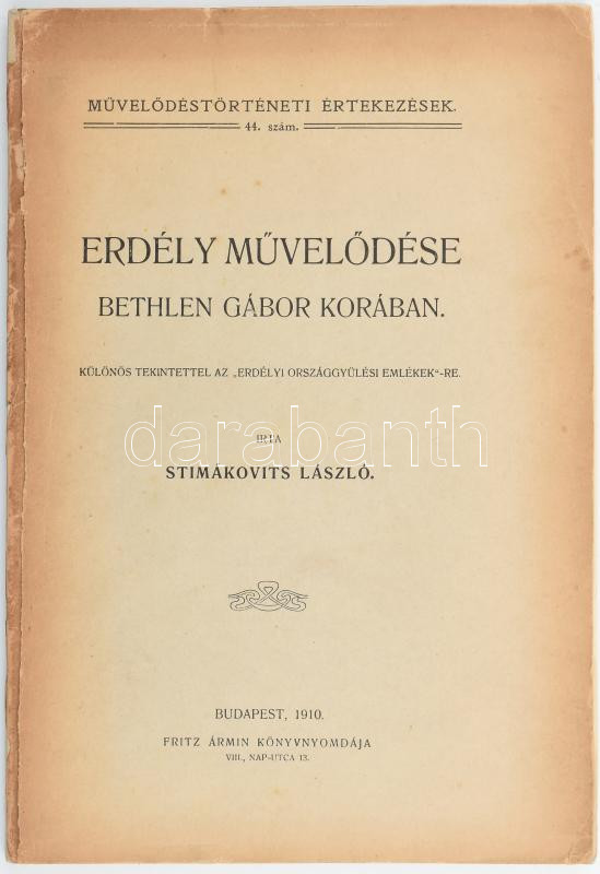 Különös tekintettel az "Erdélyi országgyűlési emlékek"-re Bp. 1910. Fritz ny. 98 l. (Művelődéstörténeti értekezések 44.) .Sérült kiadói papírborítóval