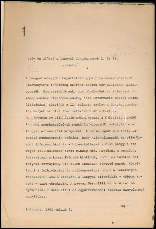 Varsó - Az elnyomás és ellenállás dokumentumai II. Bp., 1982, k.n., (2)+93+(4) p. Szamizdat gépirat. Tűzött papírkötés, kissé sérült, az utolsó lap részben elvált a tűzéstől.