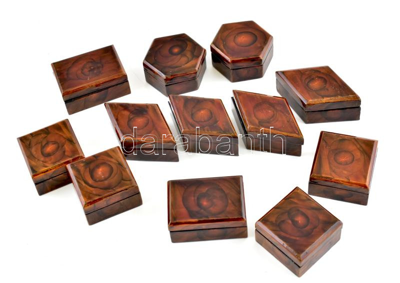 Leírás: 12 darab kínai lakkozott fa ékszeres doboz, szép állapotban, jelzés nélkül, h: 5-8,5 cm