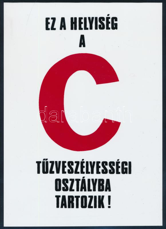 Leírás: 2 darab "Ez a helyiség C tűzveszélyességi osztályba tartozik!" feliratú műanyag tábla, 25x18 cm