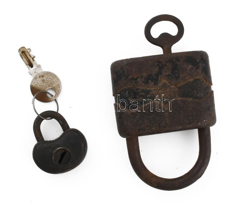 Leírás: 2 darab régi zár, Elzett jelzéssel, kulccsal