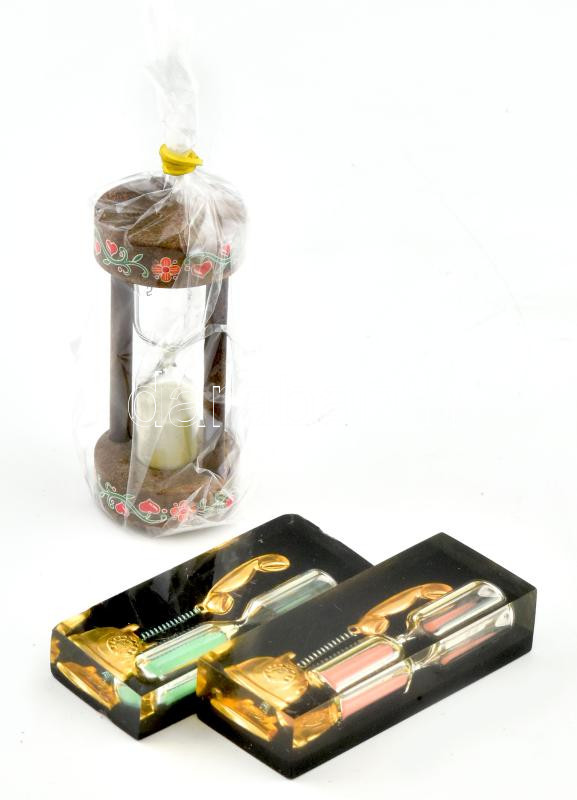 Leírás: 3 darab homokóra, szép állapotban, h: 8 cm