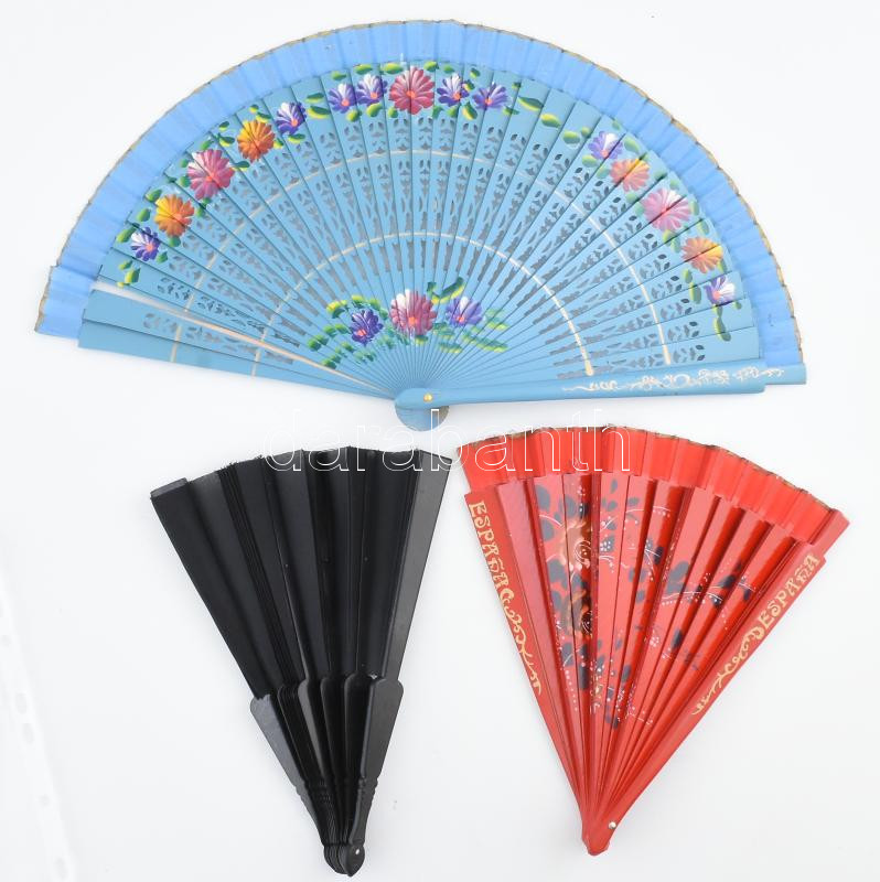 3 darab spanyol legyező, közte 2 festett fa, cca 23 cm https://www.darabanth.com/hu/441-Gyorsarveres/441.0/Mutargy-papirregiseg-egyeb/Bolhapiac~500016/3-darab-spanyol-legyezo-kozte-2-festett-fa-cca-23-cm~II2903989