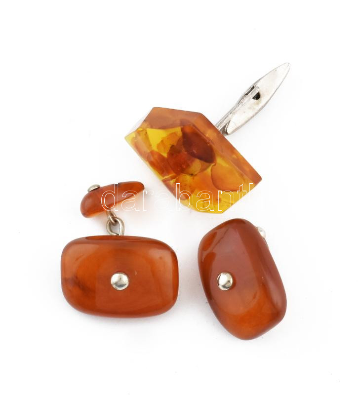 Leírás: 3 db mandzsettagomb borostyánnal