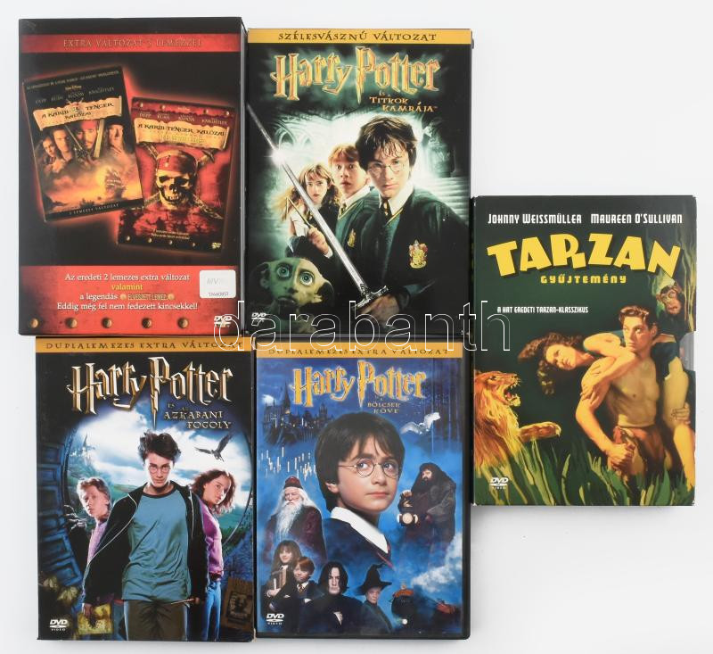Leírás: 5 darab új filmes DVD, közte Harry Potter, Tarzan, A Karib-tenger kalózai