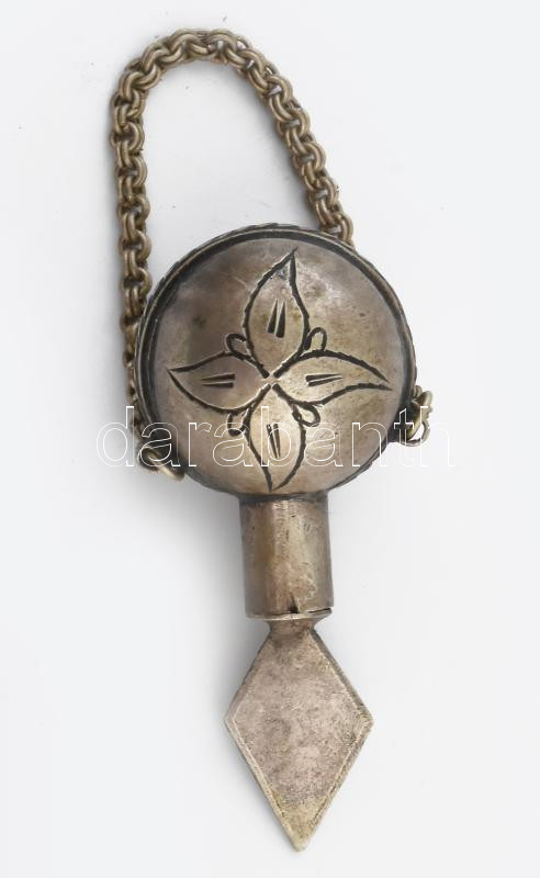Leírás: Alpakka parfümös palack, m: 7 cm