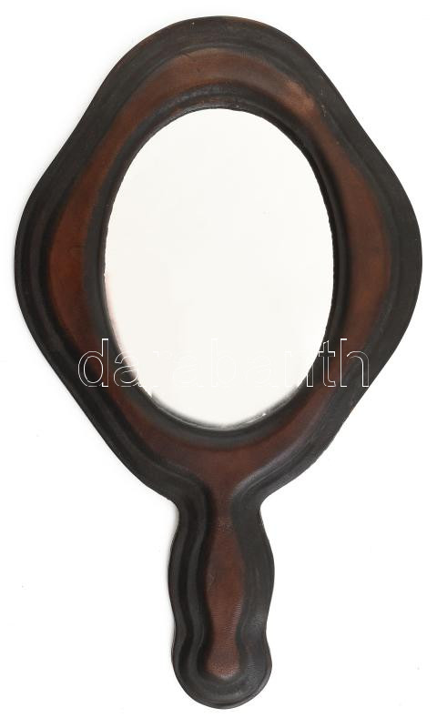Leírás: Bőr borítású kézi tükör 18x17 cm