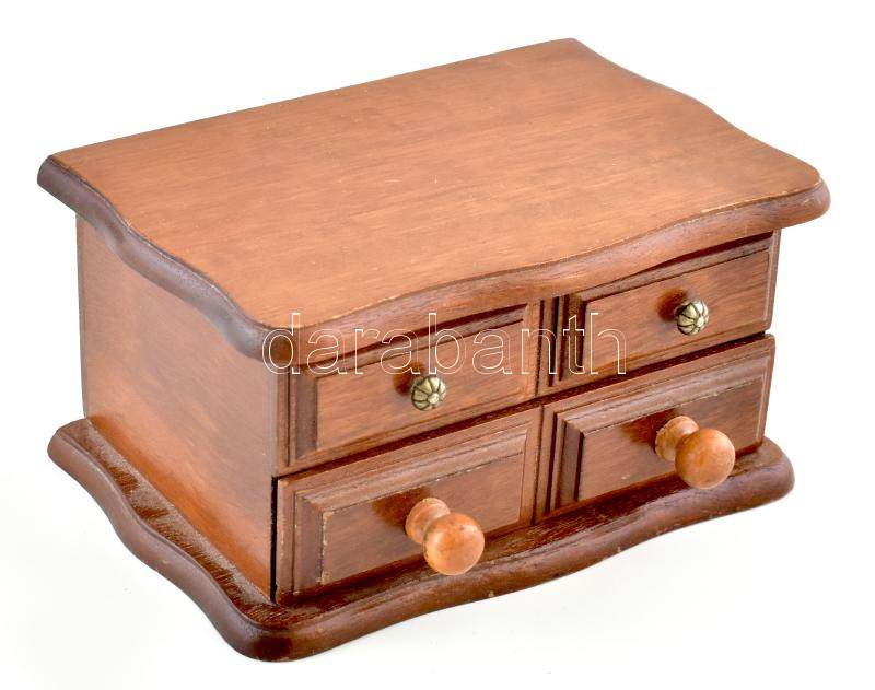Ékszeres fa fiókos díszdoboz bizsu tartalommal, kis kopottsággal, 18,5... https://www.darabanth.com/hu/441-Gyorsarveres/441.0/Mutargy-papirregiseg-egyeb/Bolhapiac~500016/Ekszeres-fa-fiokos-diszdoboz-bizsu-tartalommal-kis-kopottsaggal-18-5x12-5x9-5-cm~II2896907