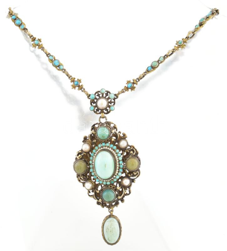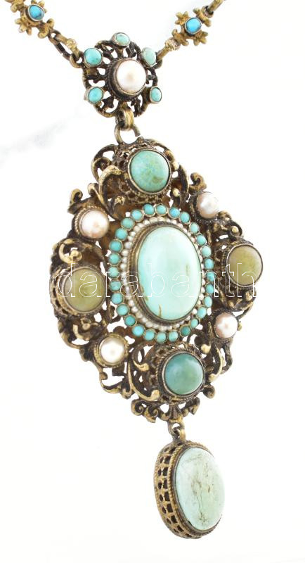 Leírás: Féldrágaköves nyaklánc díszes medállal, h: 42 cm