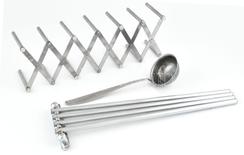Leírás: Krómozott edényszárító, törölközőtartó, merőkanál, jó állapotban