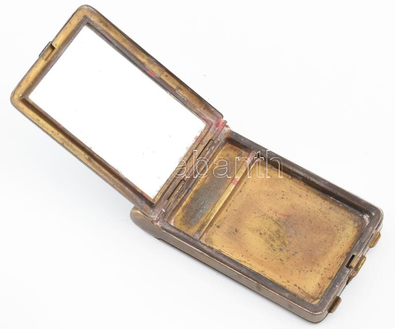 Régi púderes / sminkes doboz, réz, fedelén vésett mintával díszítve, b... https://www.darabanth.com/hu/441-Gyorsarveres/441.0/Mutargy-papirregiseg-egyeb/Bolhapiac~500016/Regi-puderes-sminkes-doboz-rez-fedelen-vesett-mintaval-diszitve-belul-tukorrel-jelz~II2902245