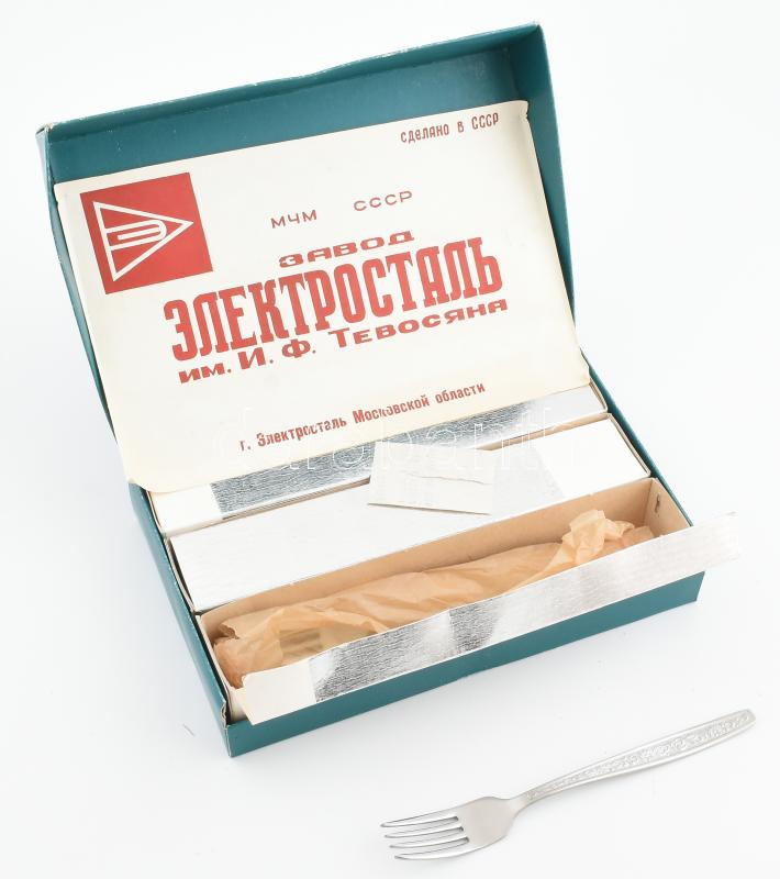 Leírás: Retro szovjet 24 darabos evőeszköz készlet eredeti csomagolásában, dobozában