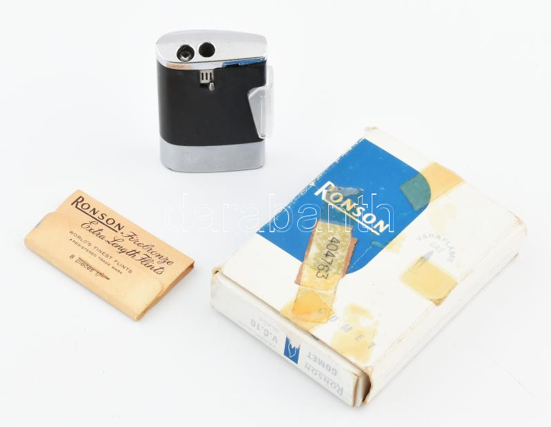 Ronson angol öngyújtó, dobozában, tartozékkal, m: 6 cm https://www.darabanth.com/hu/441-Gyorsarveres/441.0/Mutargy-papirregiseg-egyeb/Bolhapiac~500016/Ronson-angol-ongyujto-dobozaban-tartozekkal-m-6-cm~II2898705