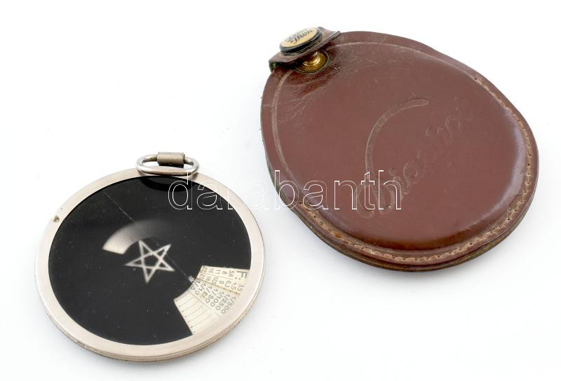 Leírás: Zeiss ikon fénymérő, forgatható, bőr tokban, sérült üveggel d: 5 cm