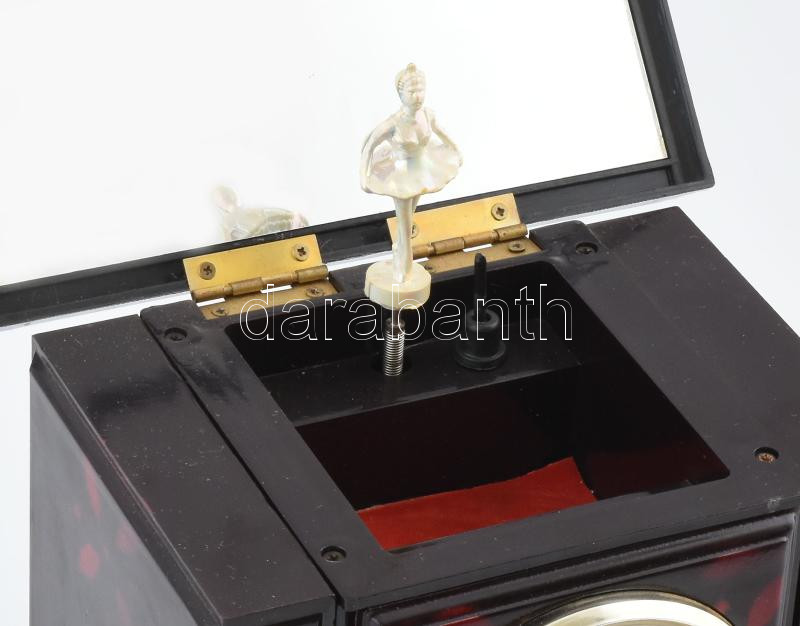 Leírás: Zenélő ékszer szekrény, műanyag házzal, sérült,17x17x11,5 cm