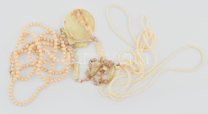 Leírás: 3 régi bizsu nyaklánc, vegyes méretben