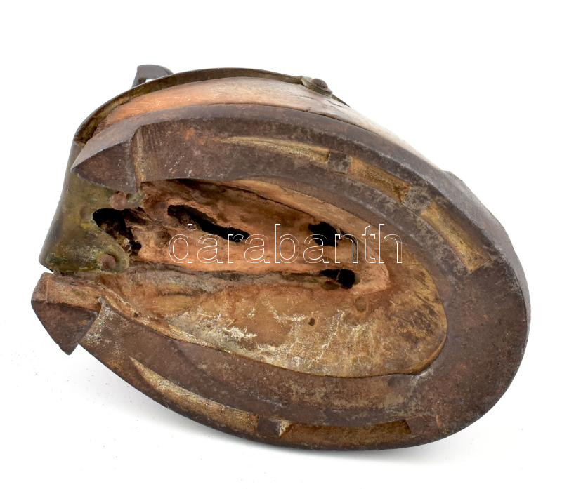 Leírás: Patkolt ló pata. Lovas asztali dísz. XIX. sz vége. Szaru. réz patkó dísszel 12x15 cm