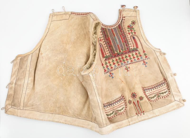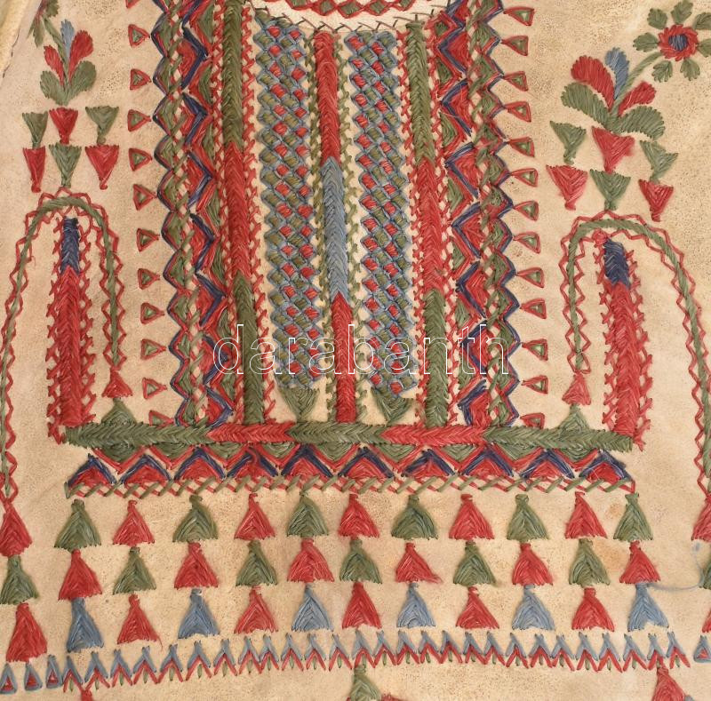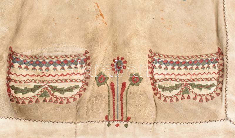 Leírás: Régi Gyimesi csángó szűcshímzett bőrmellény, korának megfelelő állapotban, m: cca 60 cm