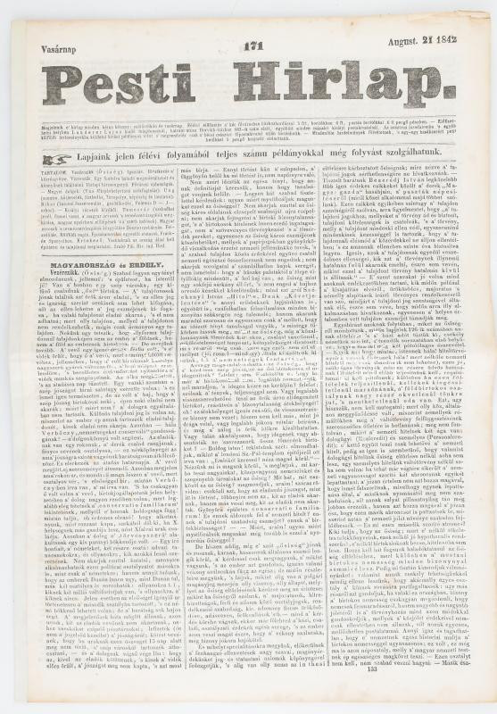 Leírás: 1842 A Pesti Hírlap 171. száma, jó állapotban