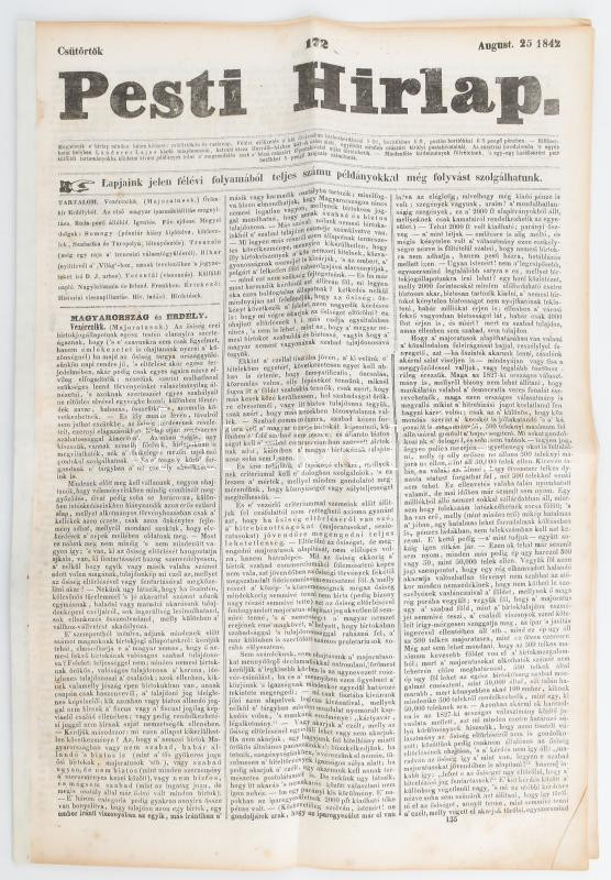 Leírás: 1842 A Pesti Hírlap 172. száma, jó állapotban