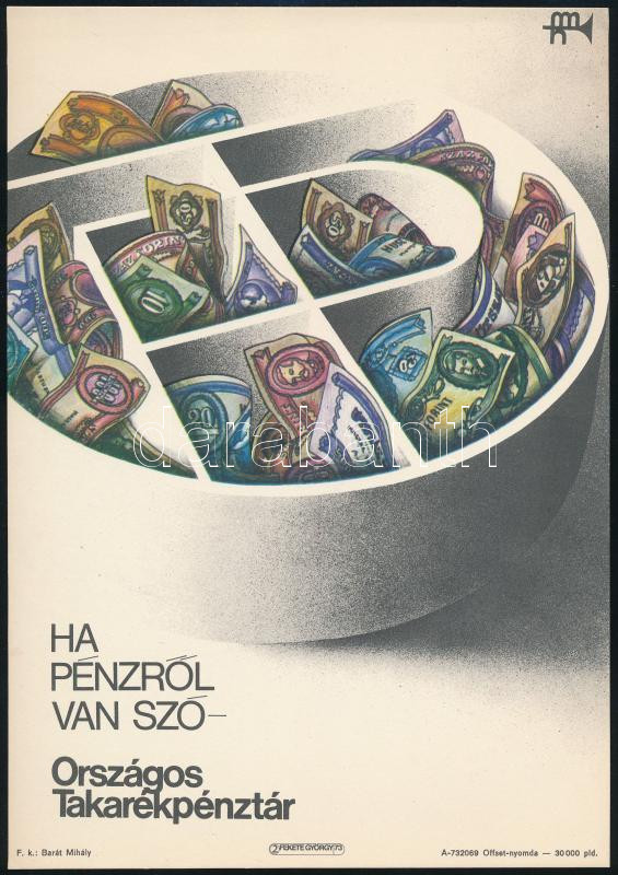 1973 Ha pénzről van szó - Országos Takarékpénztár, kisplakát, 24×16,5 ... https://www.darabanth.com/hu/441-Gyorsarveres/441.0/Mutargy-papirregiseg-egyeb/Plakat~500033/1973-Ha-penzrol-van-szo-Orszagos-Takarekpenztar-kisplakat-24C39716-5-cm~II2904906