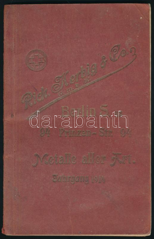 1914 Rich. Herbig & Co. Berlin, Metalle aller Art., Jahrgang 1914. Fémipari termékek árjegyzéke, német nyelven, fekete-fehér illusztrációkkal. Helyenként kissé foltos, két lap kijár, 104 p.